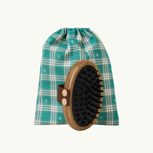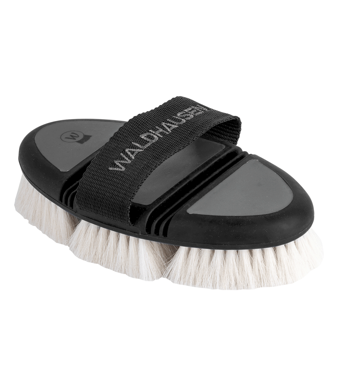 Blød børste: Denne anvendes efter gummistriglen eller metalskraperen for at glatte pelsen og fjerne det sidste støv. Den bløde strigle er også god til hestens ansigt og følsomme områder.